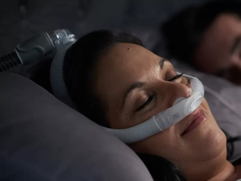 Ideal para pacientes con apnea del sueño que buscan una mascarilla ligera, discreta y confortable, que combine eficacia en la terapia con libertad de movimiento.